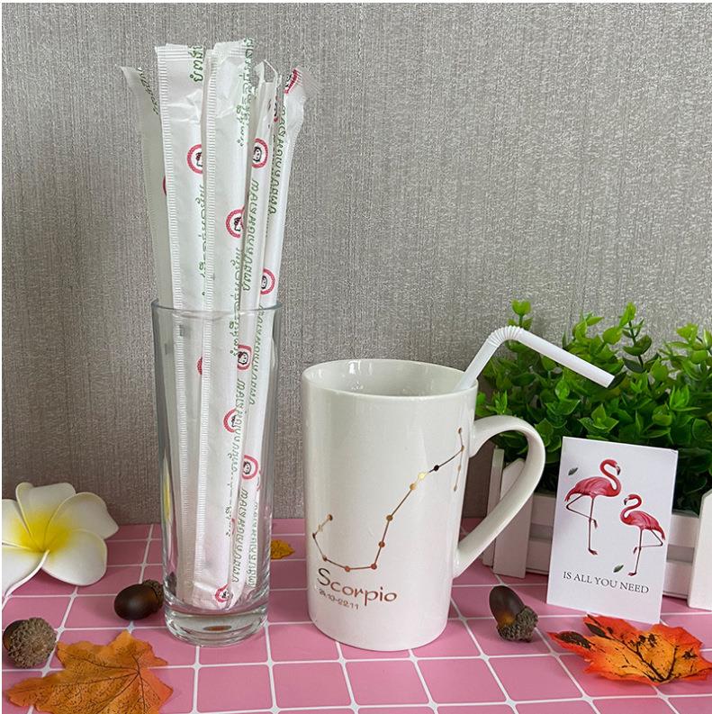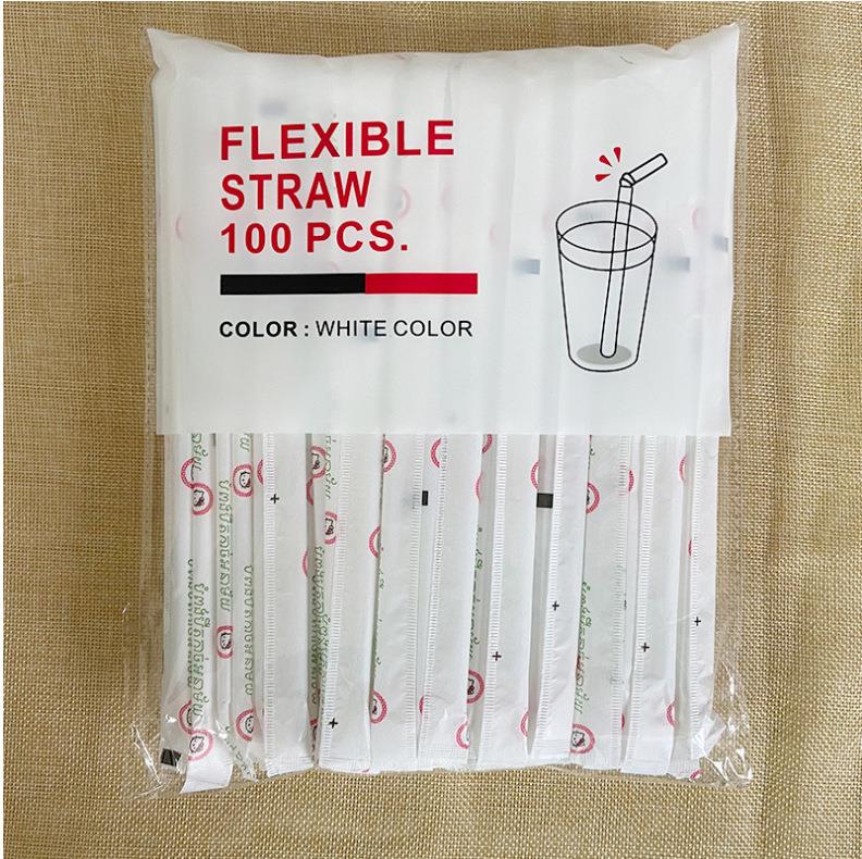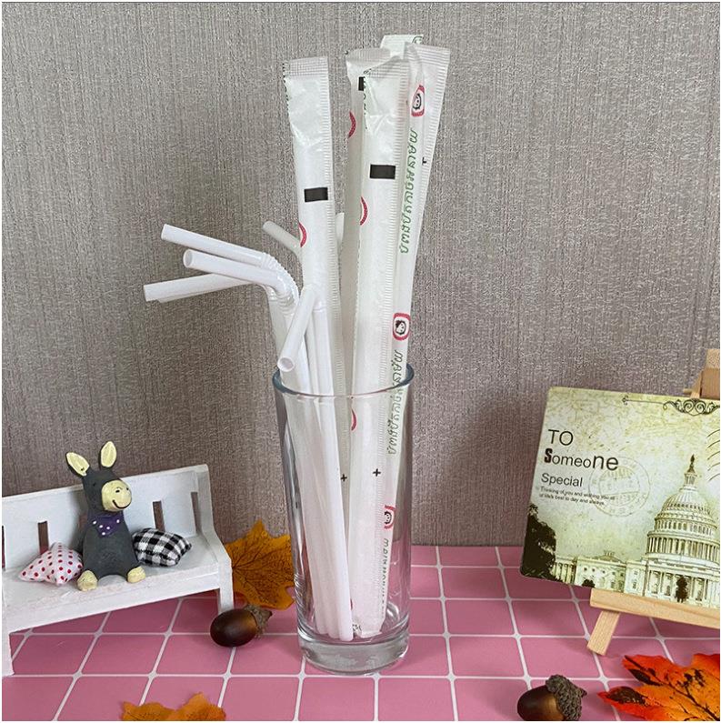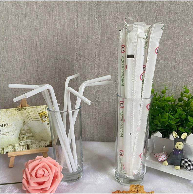 高档白色弯头塑料吸管透明可弯曲饮料一次性独立包装吸管